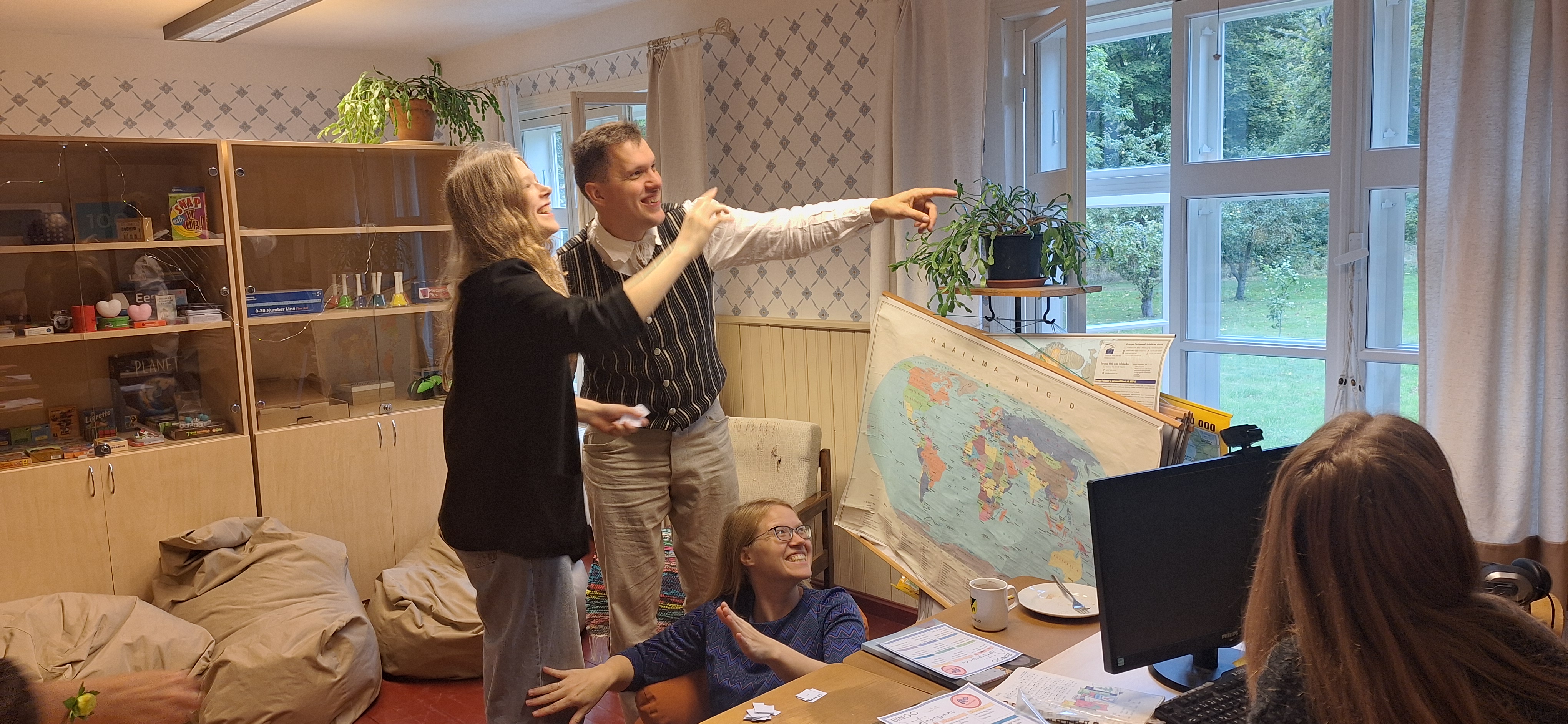 Siis oli aeg orienteerumismänguks. Kaks õpetajate võistkonda leidsid metsas liikudes ülesanded ja pidid need koos lahendama või täitma.